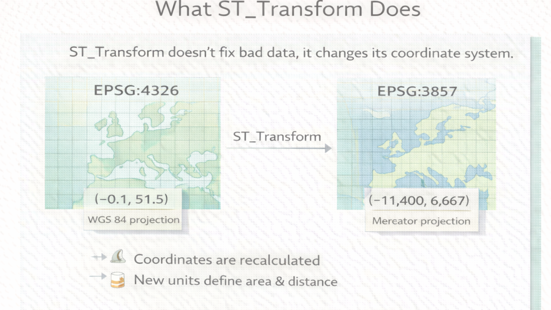 Many people treat ST_Transform as a data cleanup function. It’s not.…