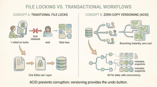 Most spatial data lakes are just S3 buckets full of files with no coordination layer. Multiple analysts writing simultaneously? Corrupted data. Schema evolution? Manual rewrites. Time travel? Impossible. Iceberg fixes this by treating object storage as a database.