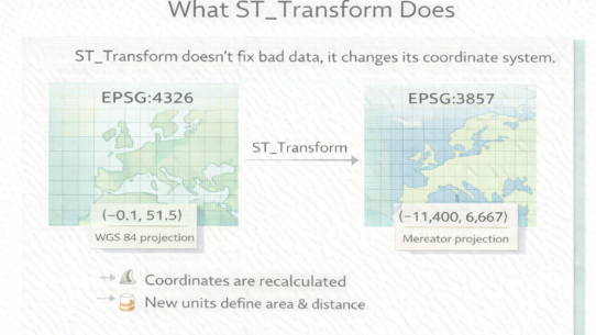 Many people treat ST_Transform as a data cleanup function. It’s not. It recalculates coordinates from one…